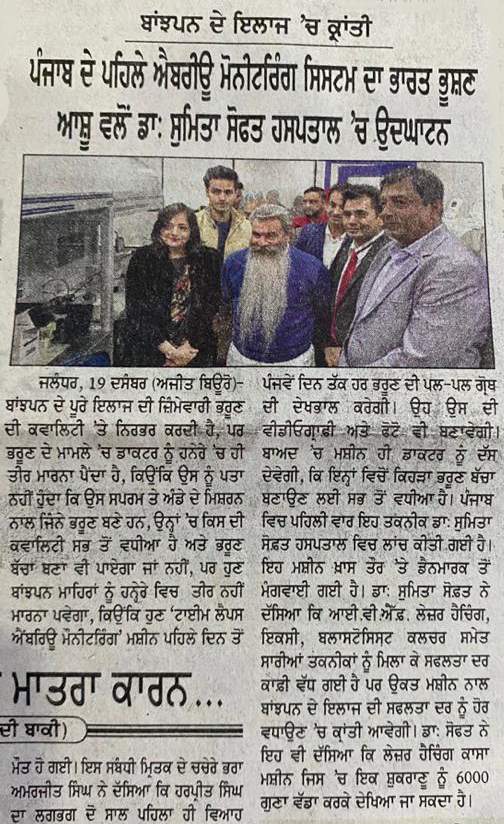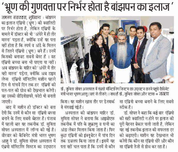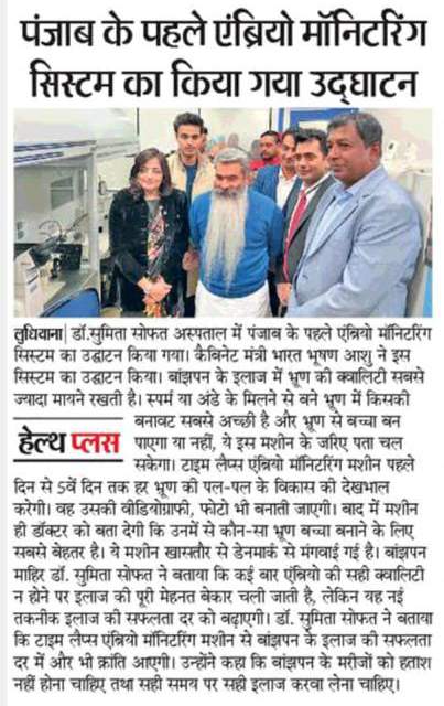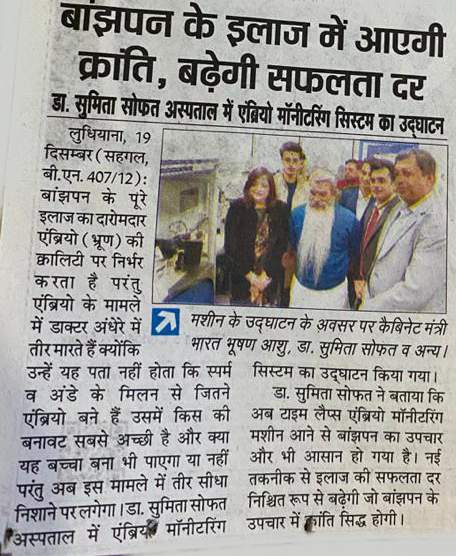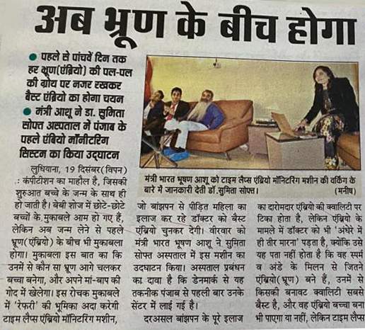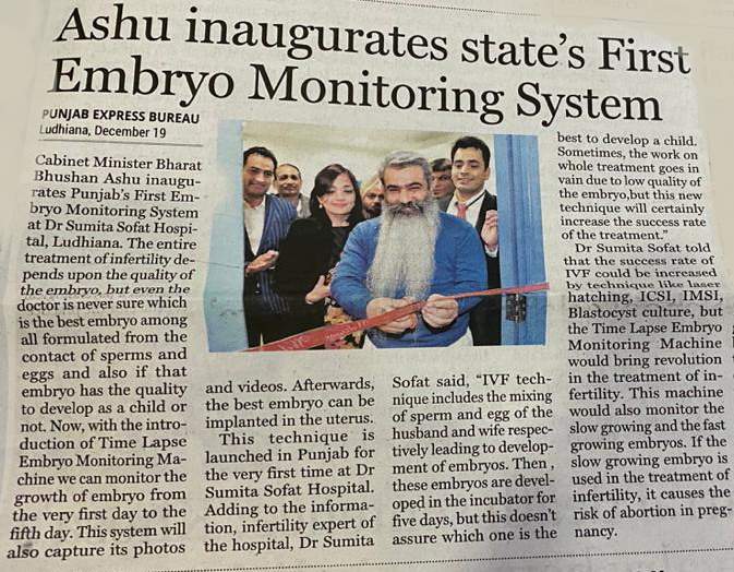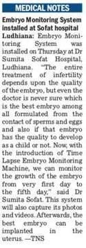 Press Release: Congratulations to the people of Punjab, that Dr. Sumita Sofat brings the Embryo Monitoring System for the first time in Punjab which is the latest technology from Denmark that will increase the IVF and ICSI infertility treatments success rates.