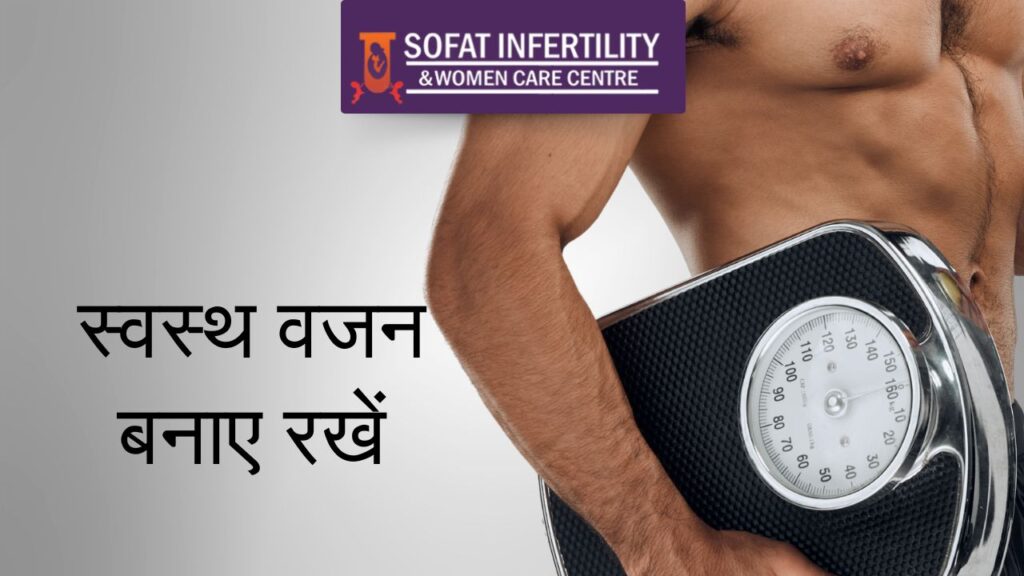 ज़्यादा मोटापा और कम वज़न लोगो के लिए सही नहीं होता है। मोटापा ज्यादा और काम होने के कारण पुरुषों के शरीर में हार्मोन बिगड़ सकते हैं, जो पुरुष बांझपन का कारण बनते हैं। पुरुष को चाहिए कि वह अपने फर्टिलिटी को बेहतर करने के लिए हेल्दी वेट को बनाए रखें। नियमित एक्सरसाइज और संतुलित आहार के जरिये हेल्दी बॉडी मास इंडेक्स पाने में और बनाए रखने में मदद मिलती है।